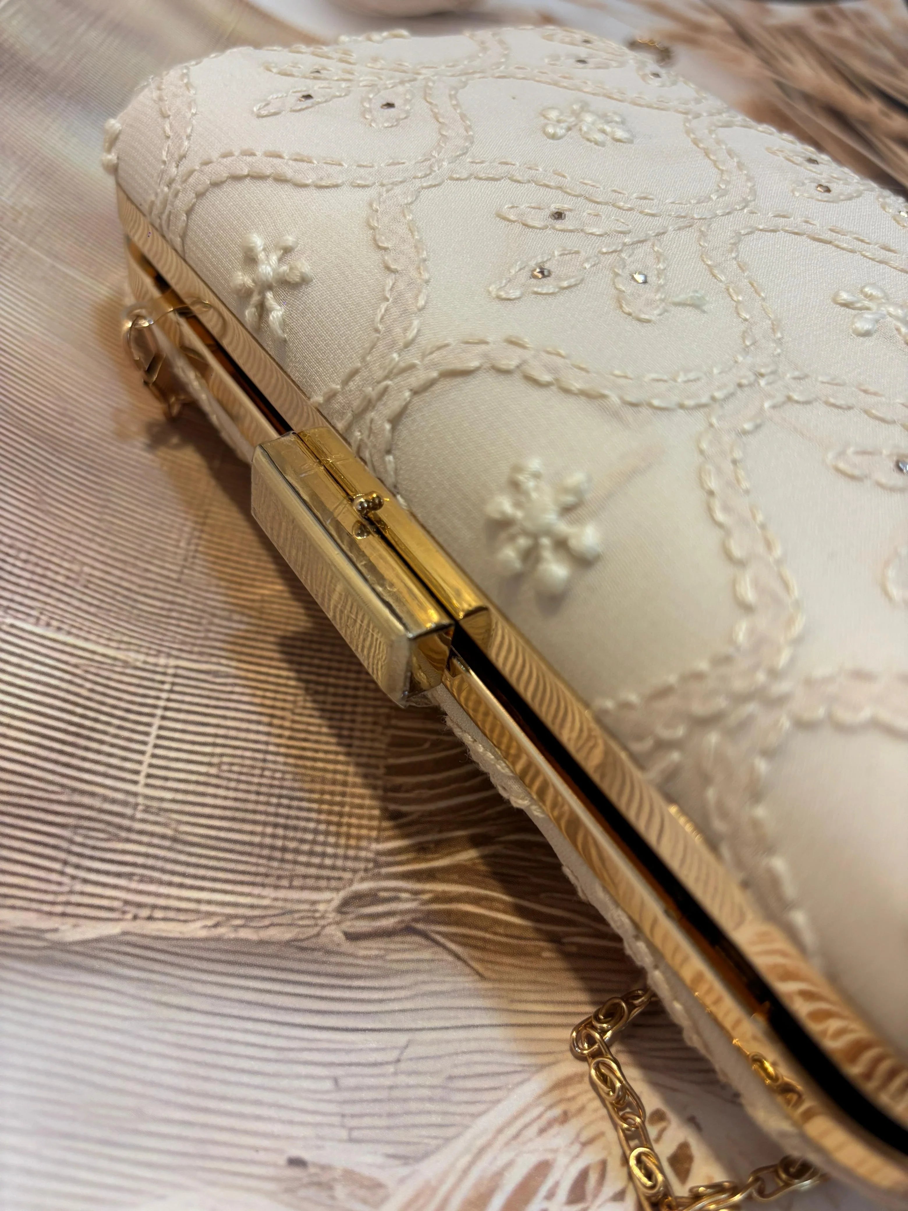 Elegant Hand Embroidered Fawn Chikankari Floral Clutch