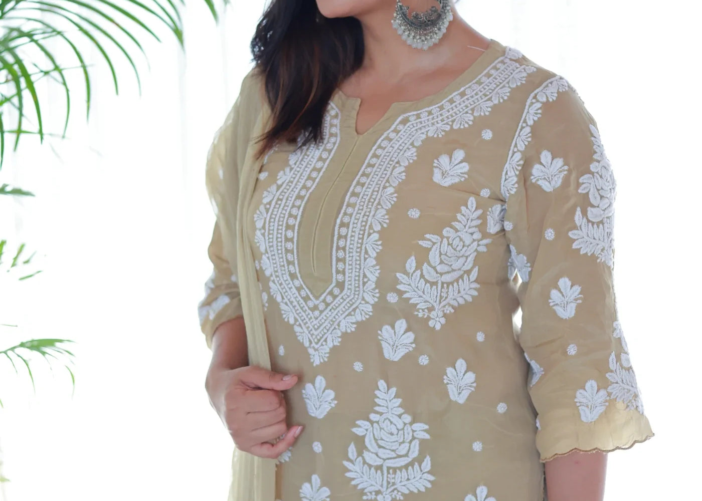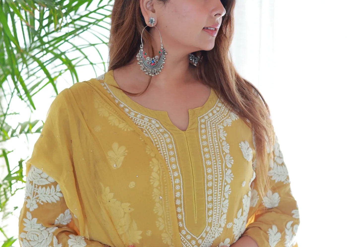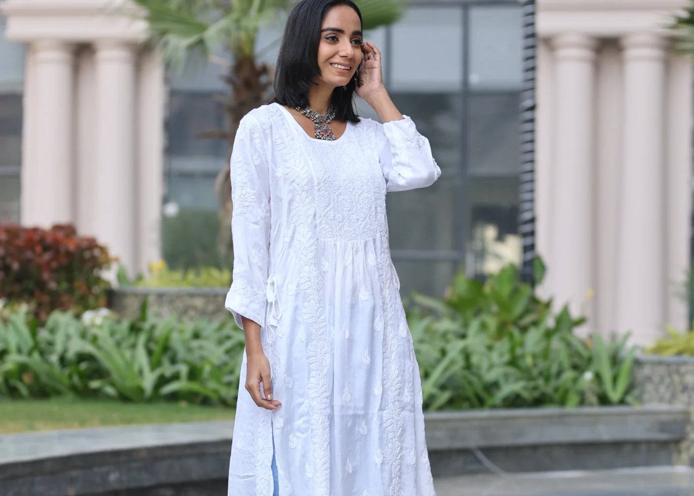 Aafreen Pure White Crepe Suit Set With Mukesh Dupatta