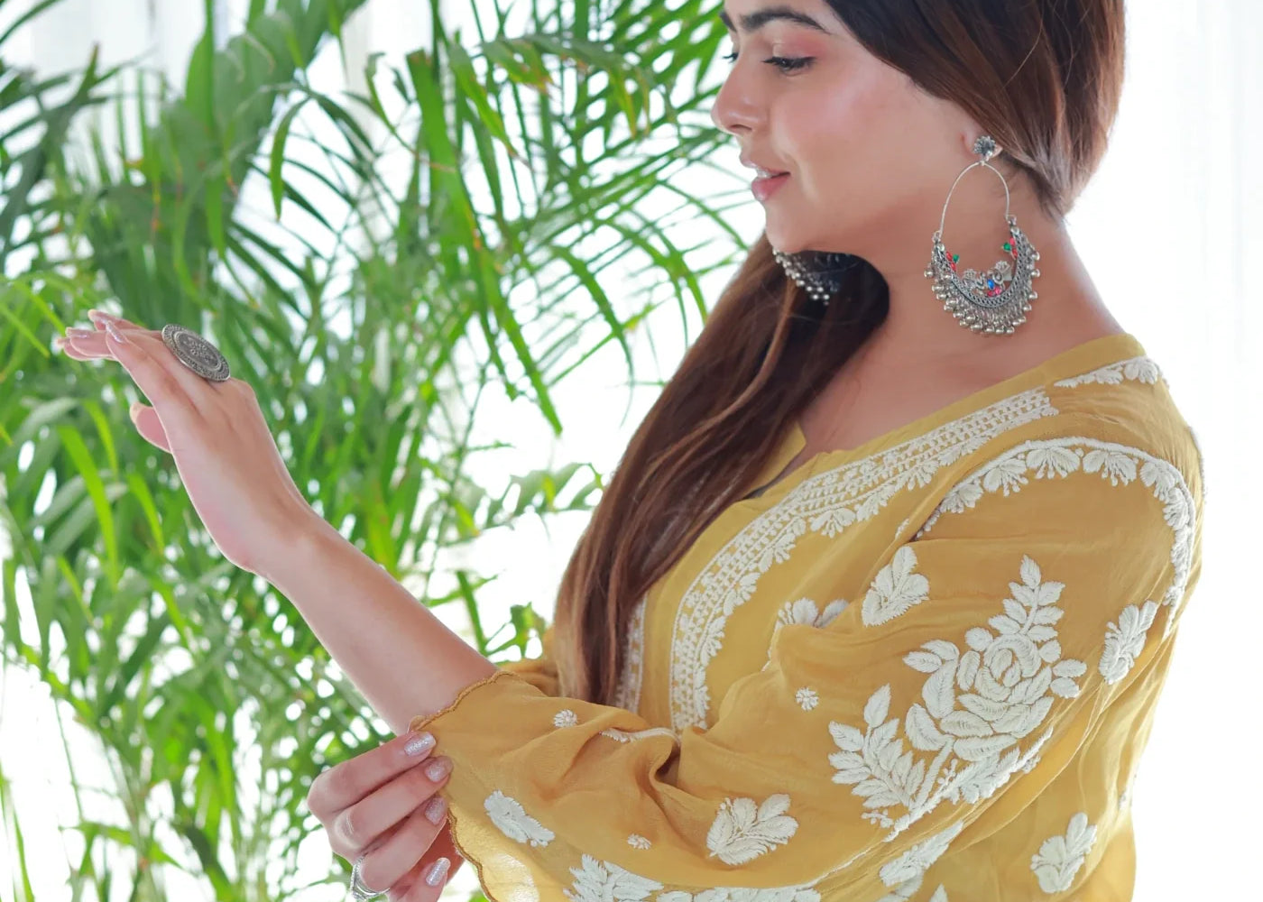Aafreen Mustard Brown Crepe Suit Set With Mukesh Dupatta