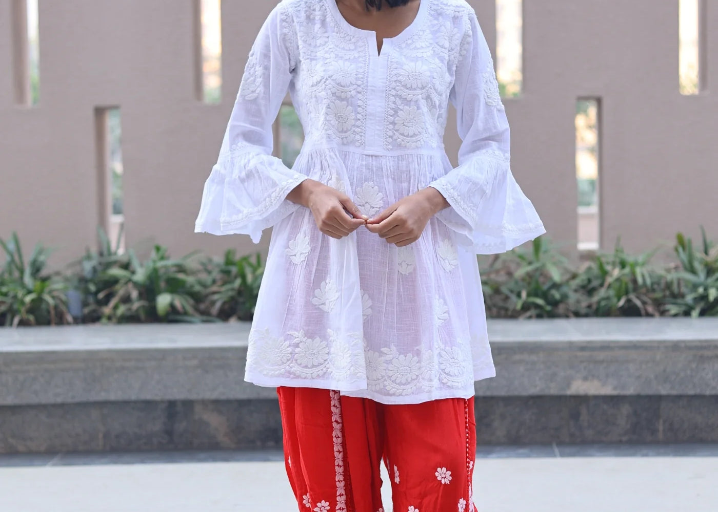 Mahnoor Peplum White Linen Cotton Short Top