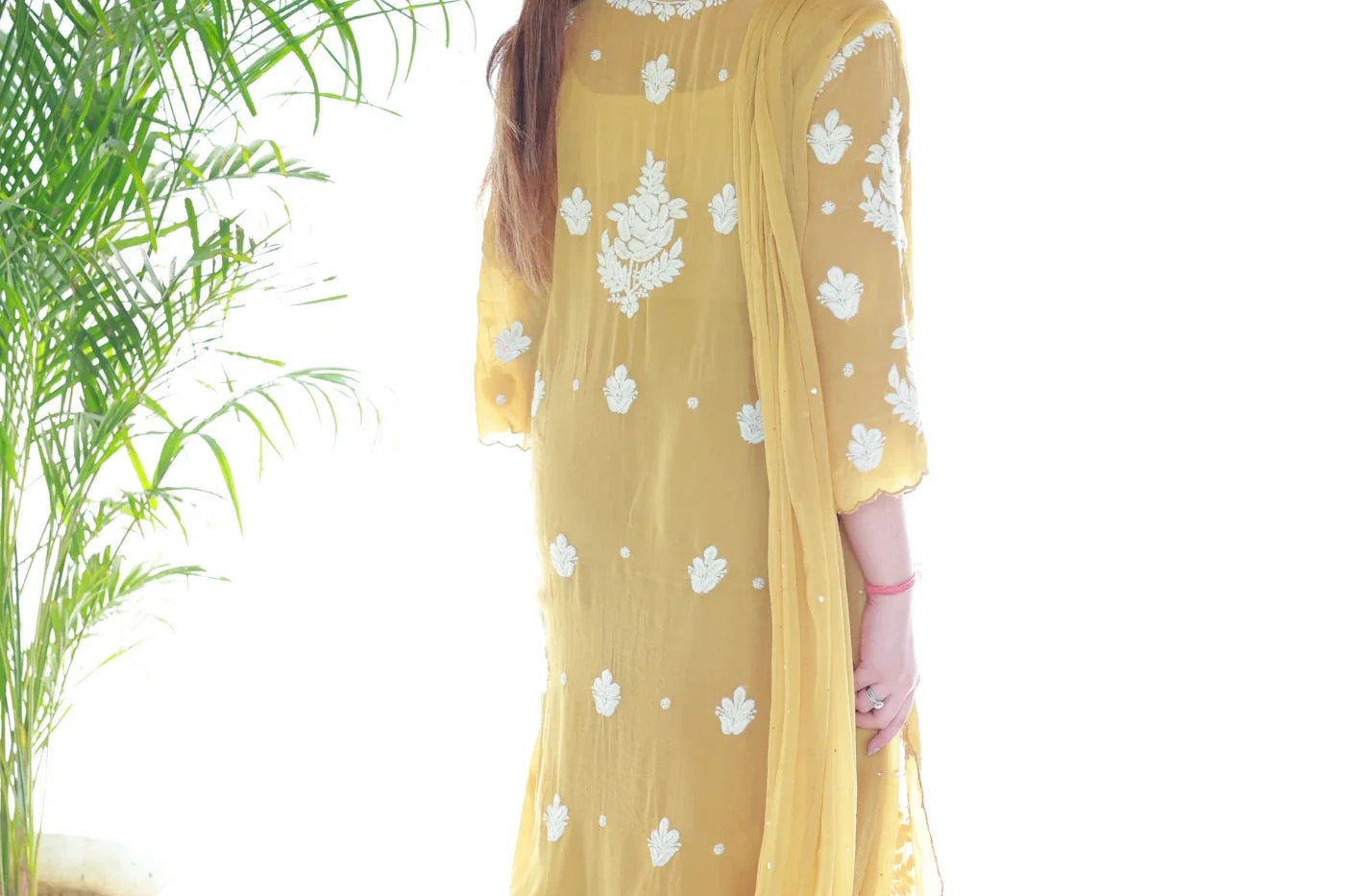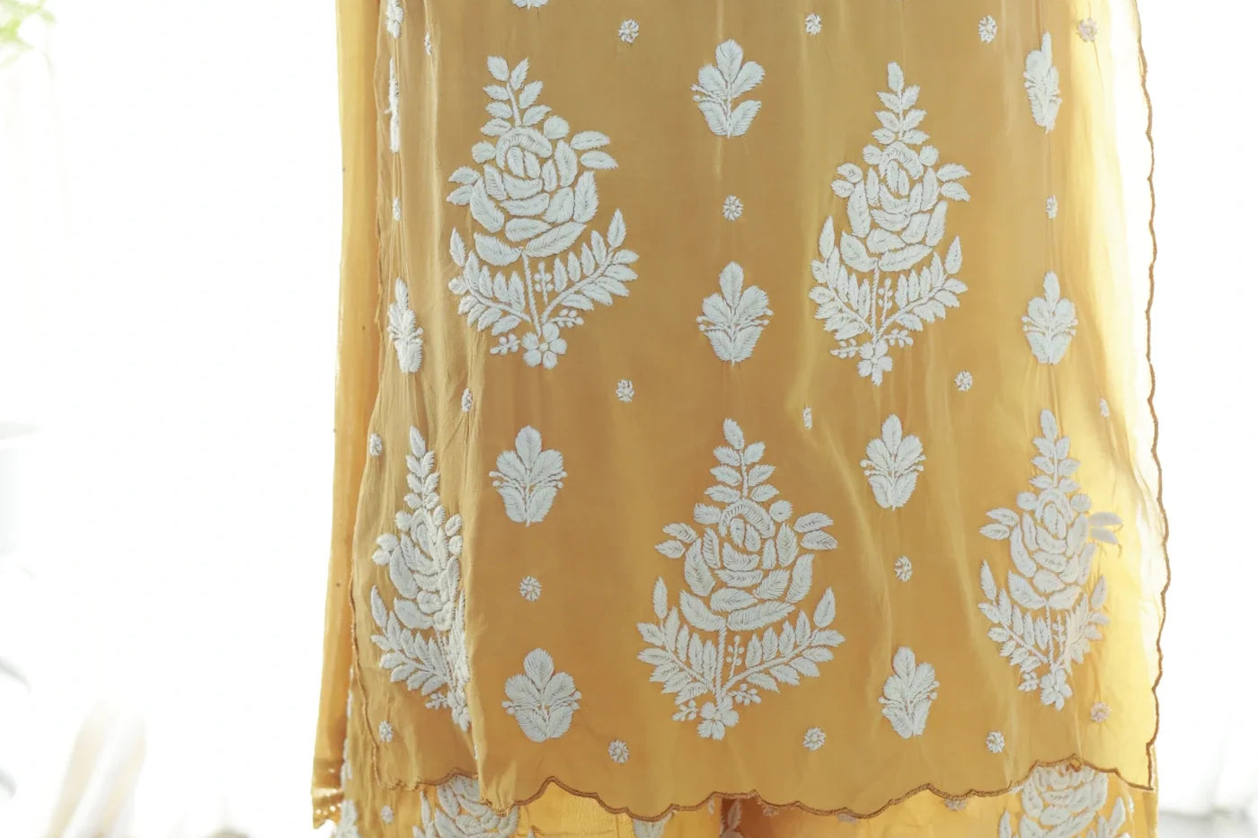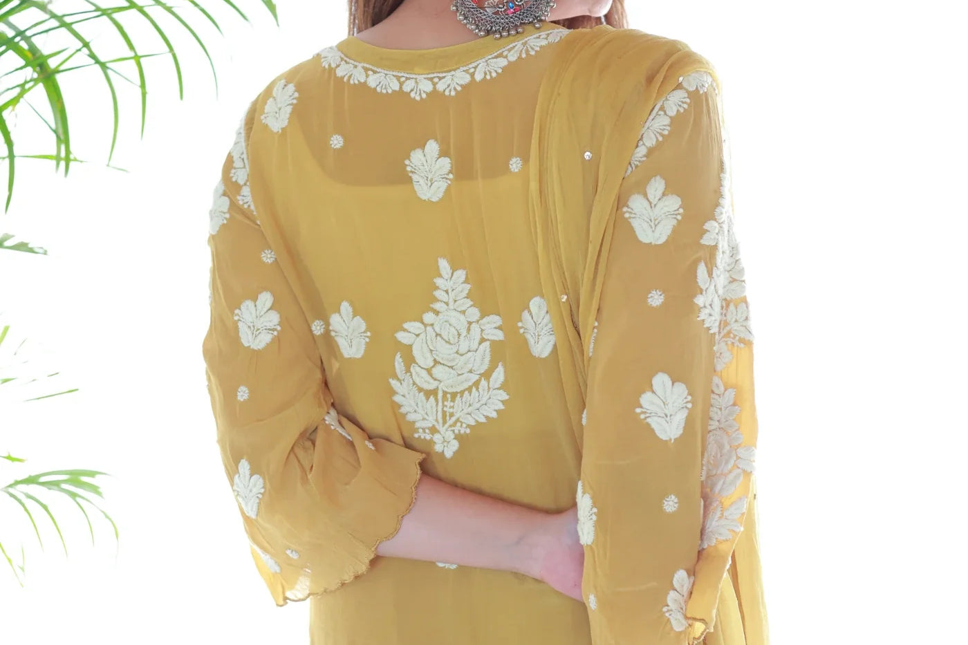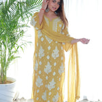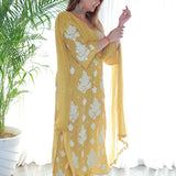 Aafreen Mustard Brown Crepe Suit Set With Mukesh Dupatta