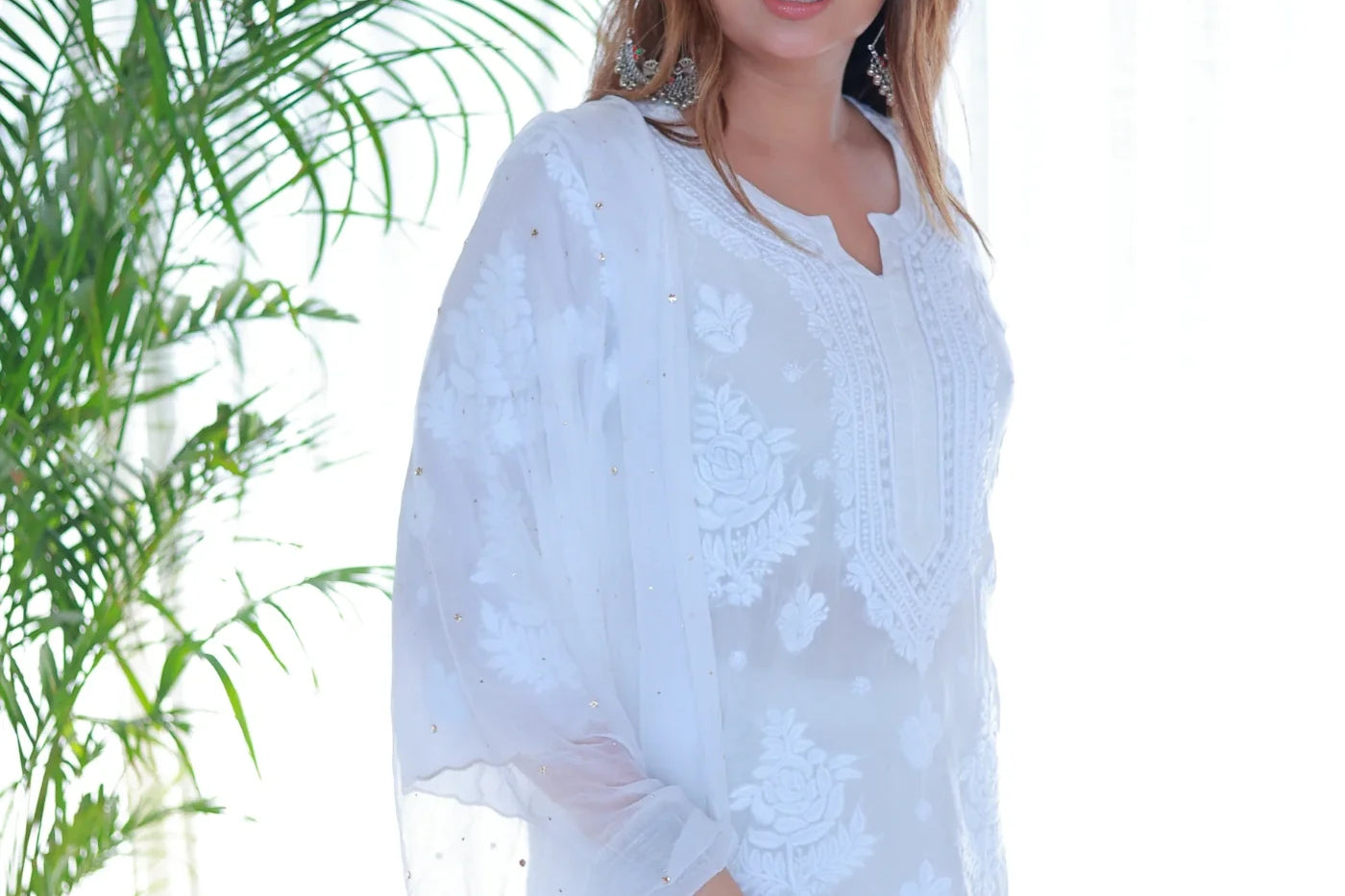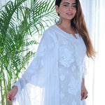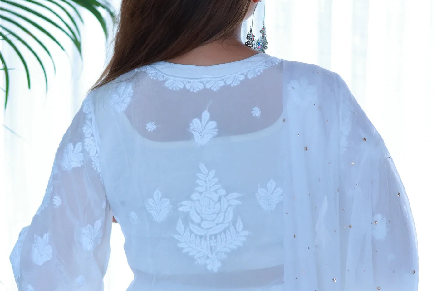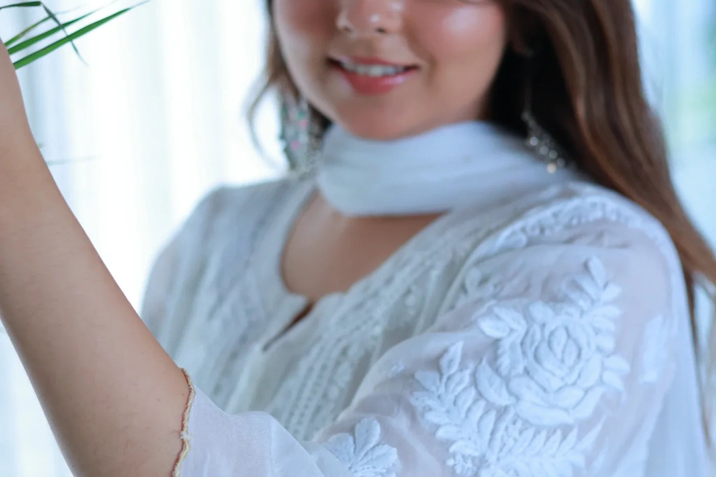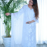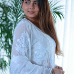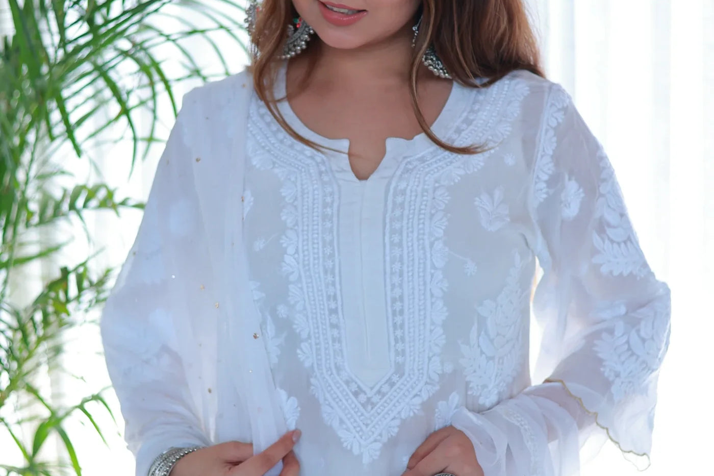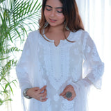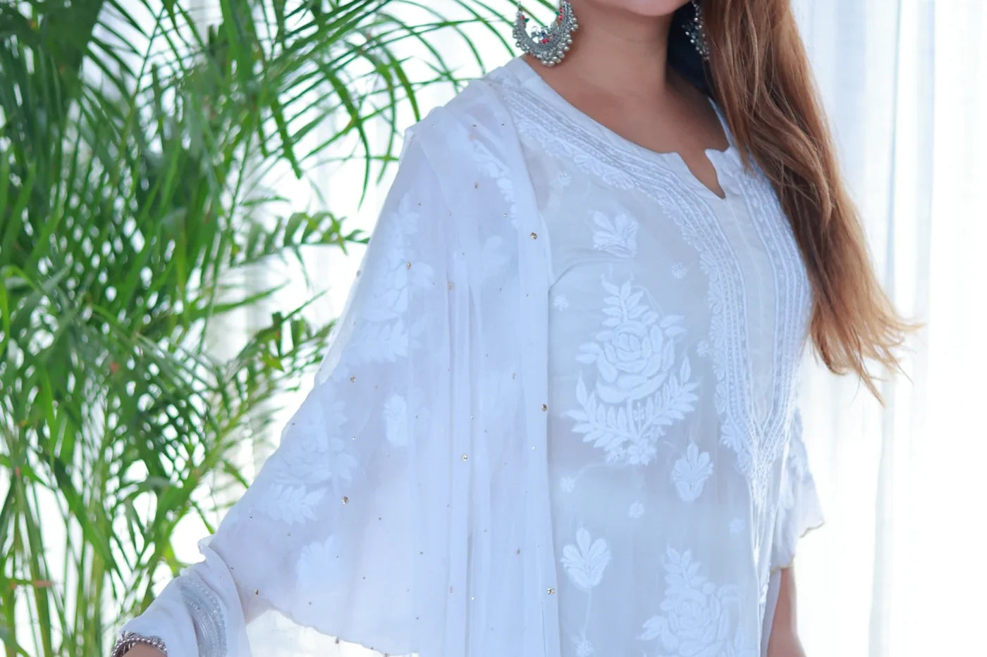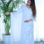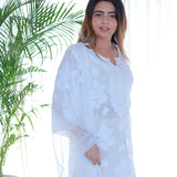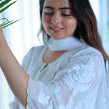 Aafreen Pure White Crepe Suit Set With Mukesh Dupatta