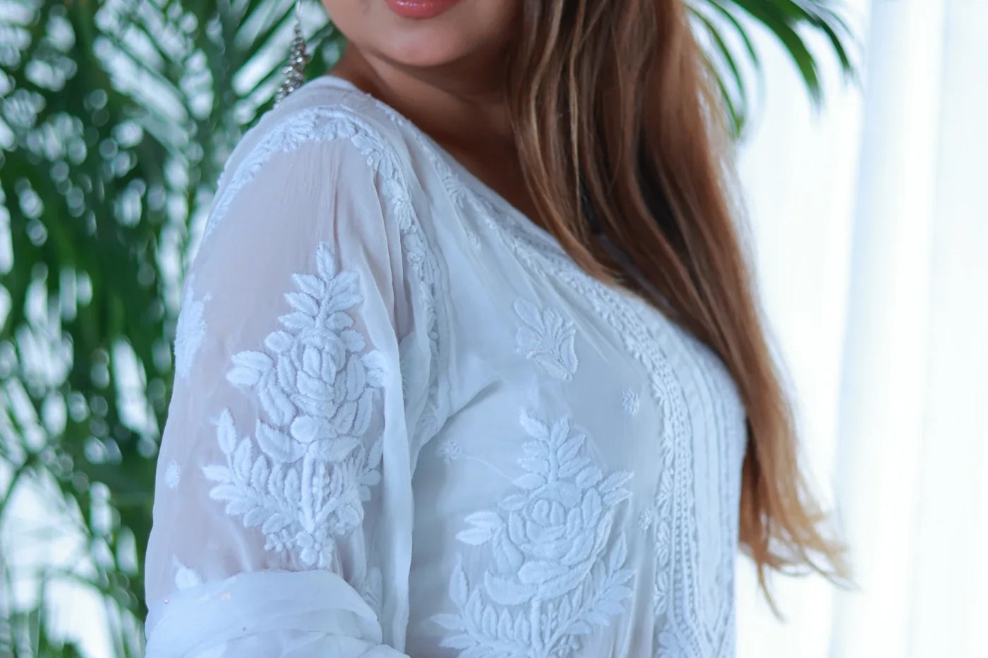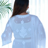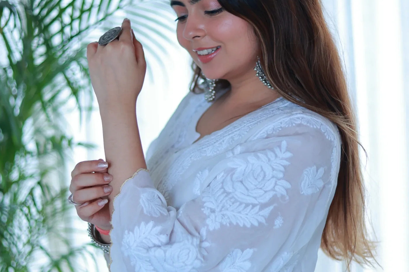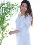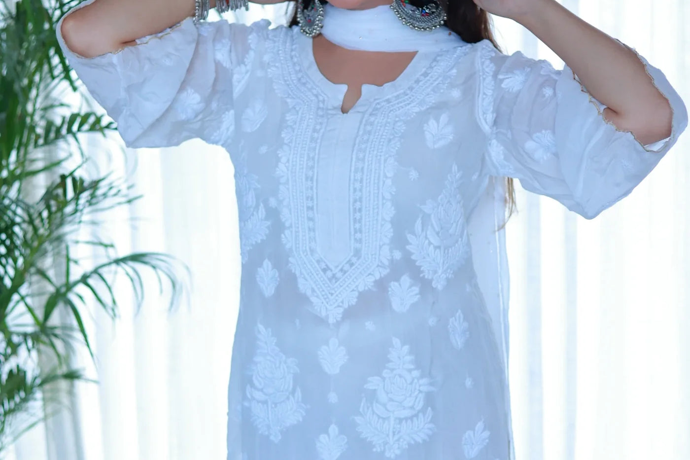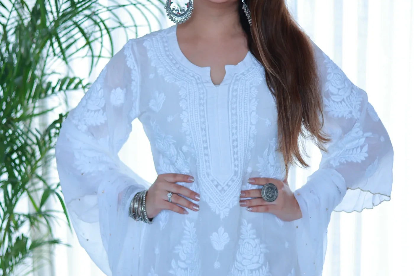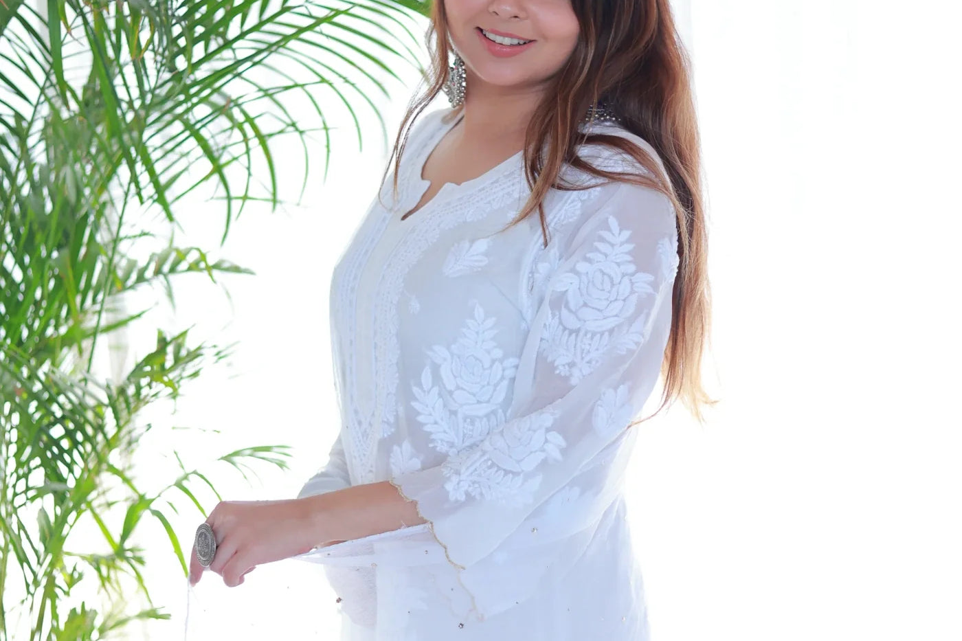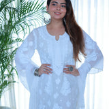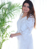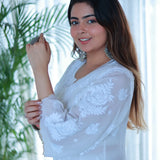 Aafreen Pure White Crepe Suit Set With Mukesh Dupatta