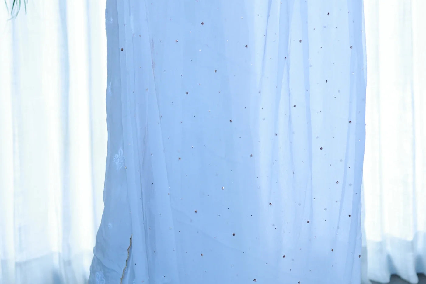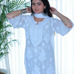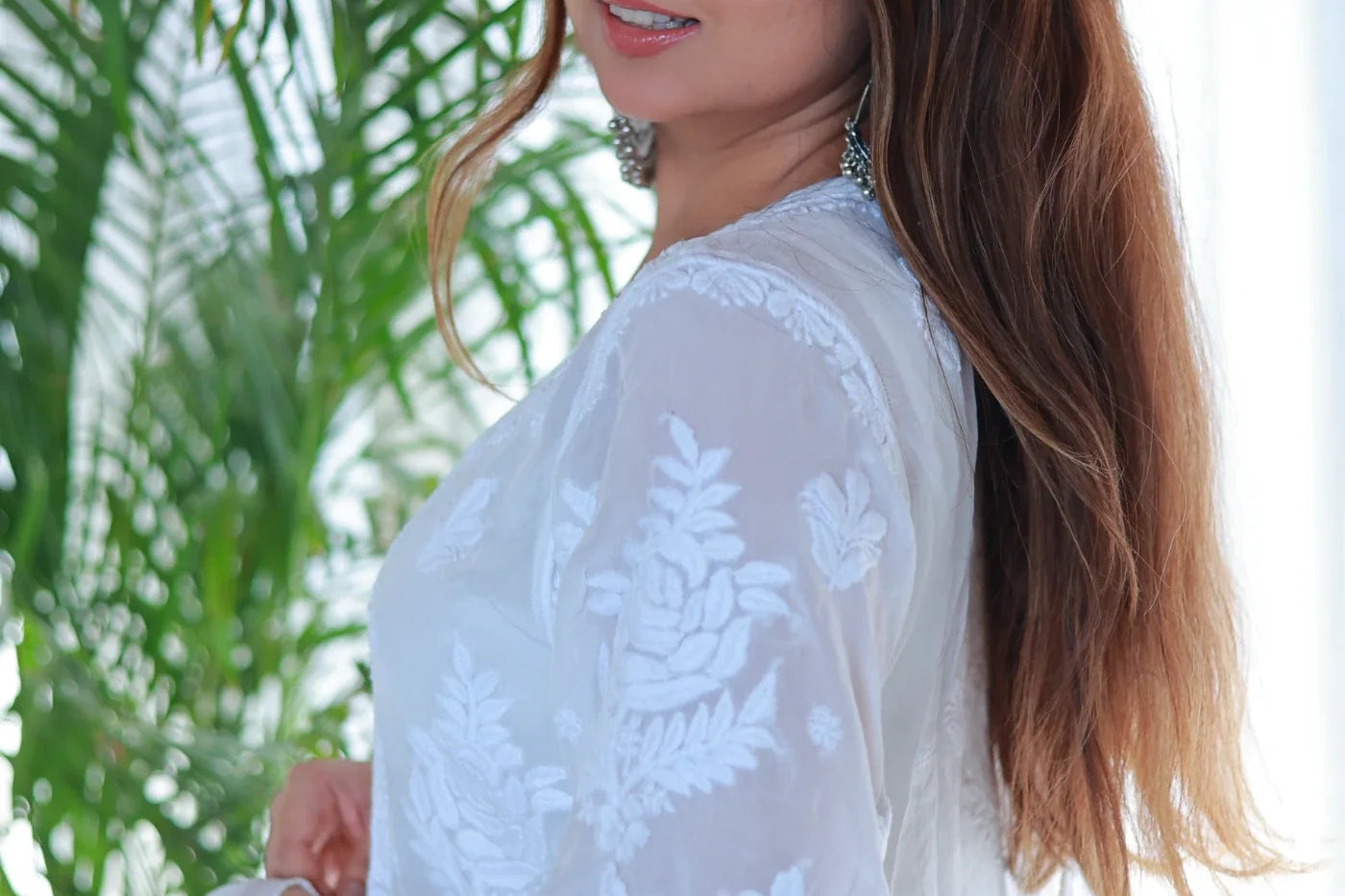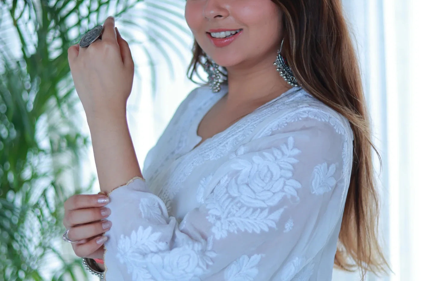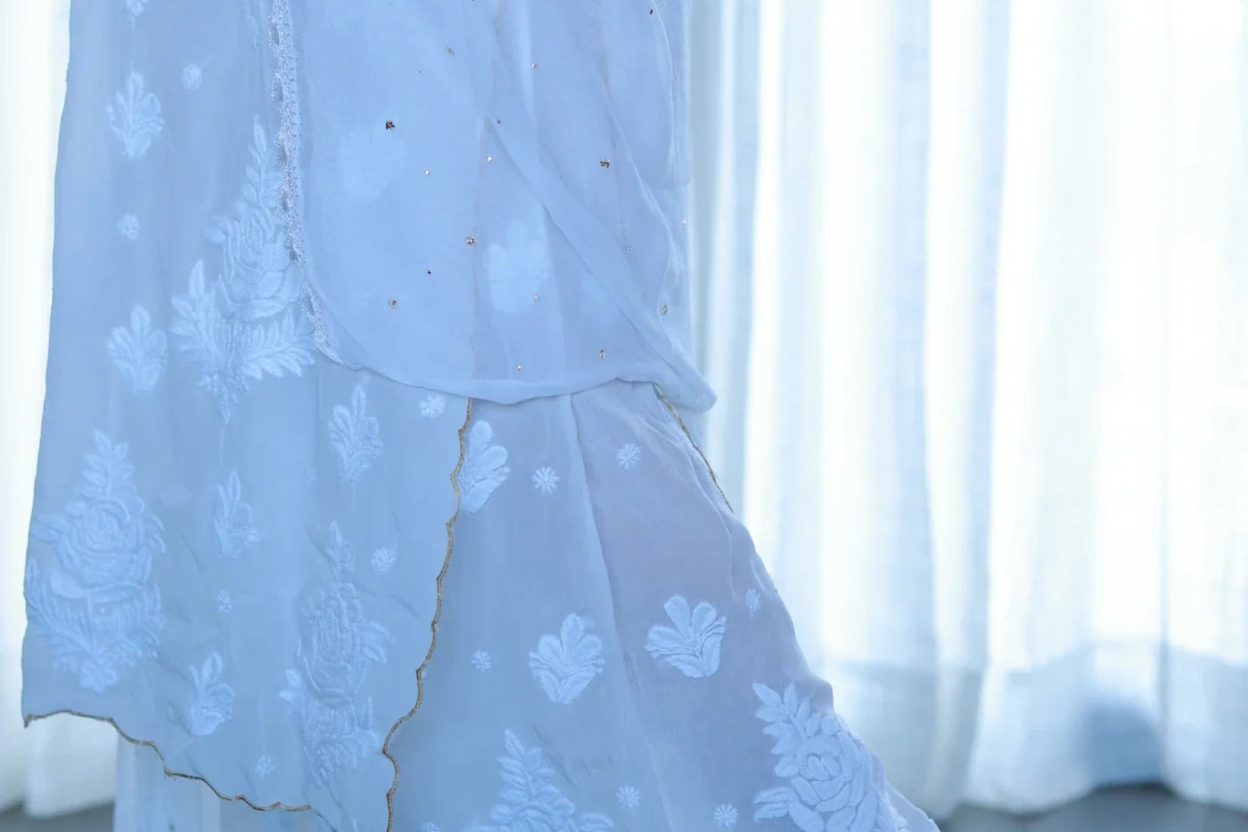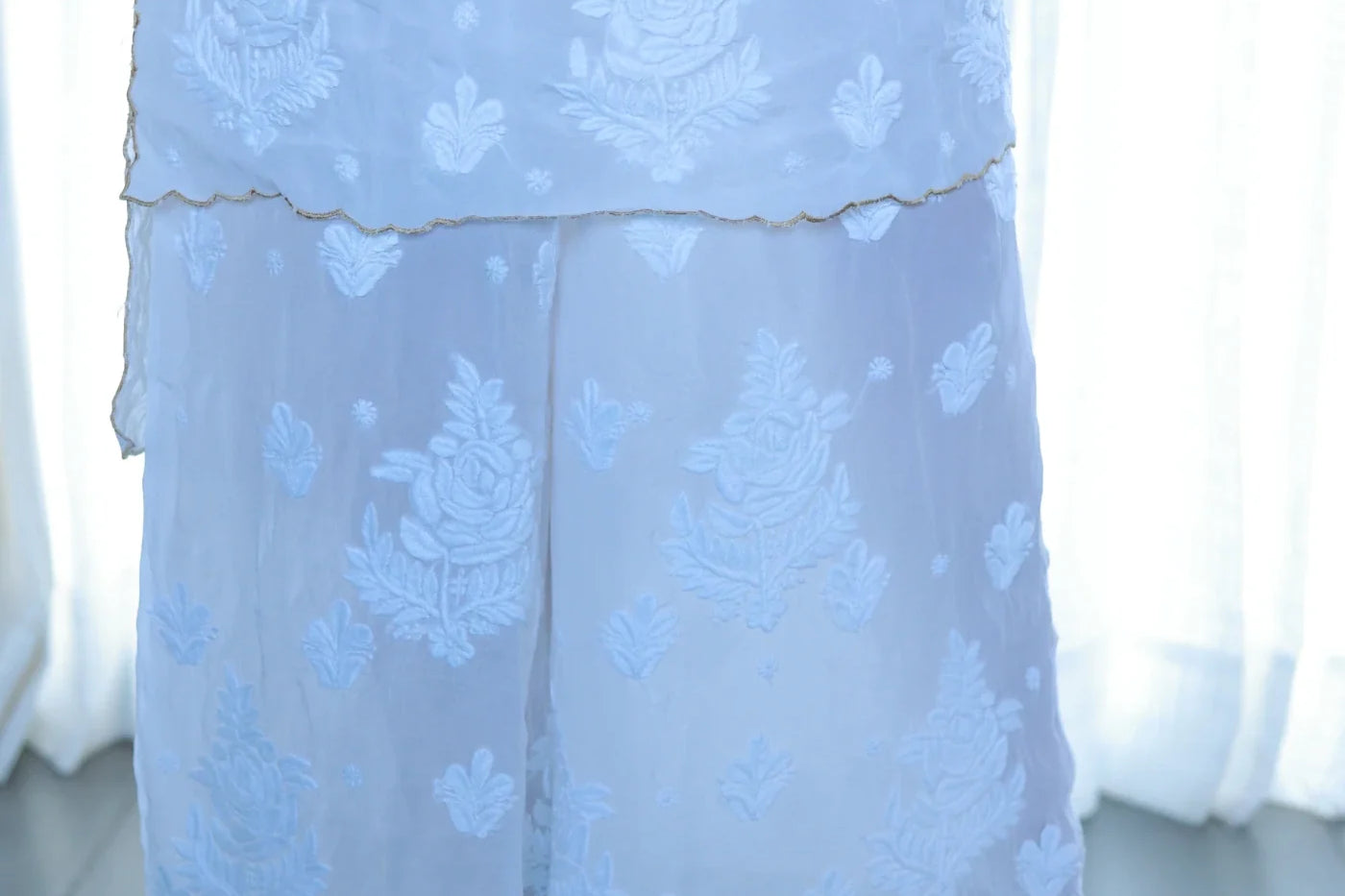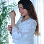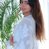 Aafreen Pure White Crepe Suit Set With Mukesh Dupatta