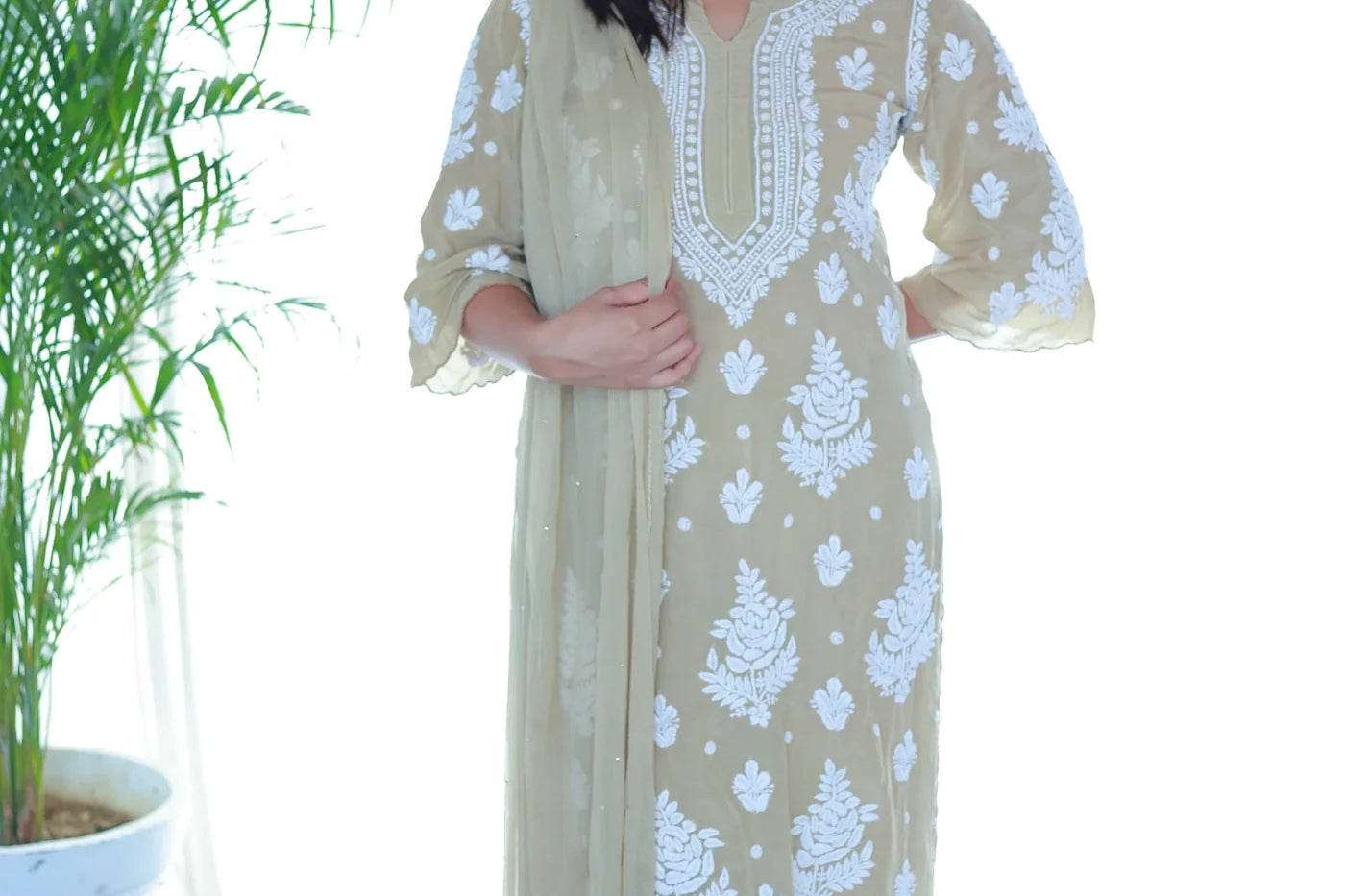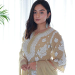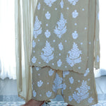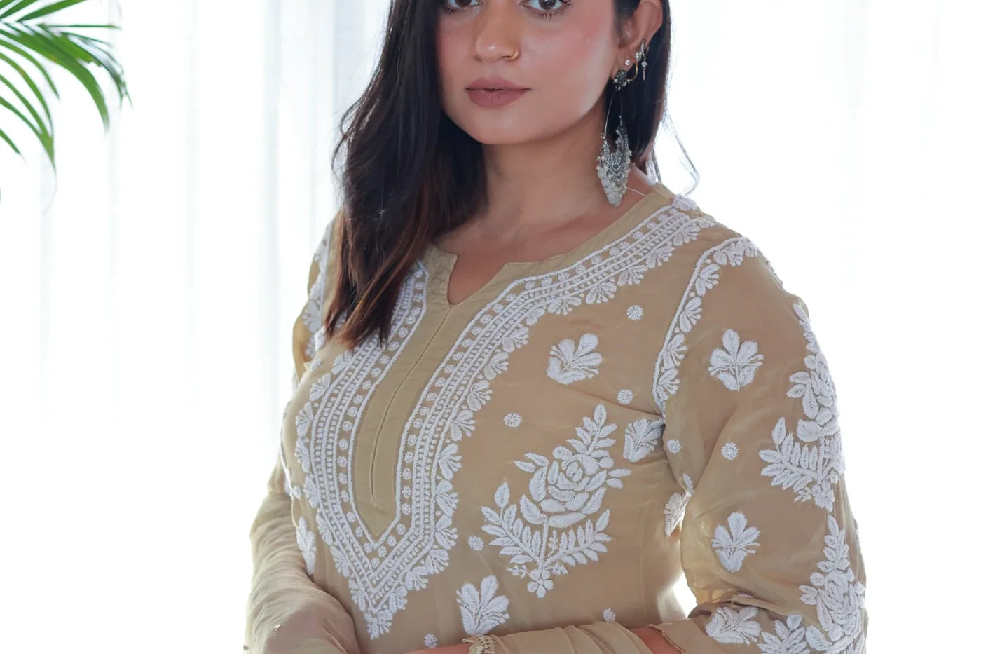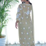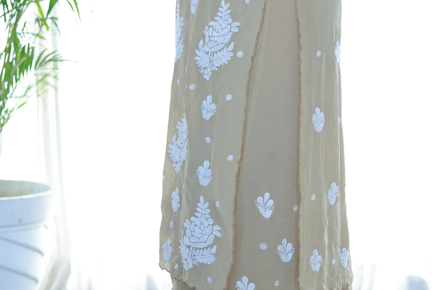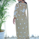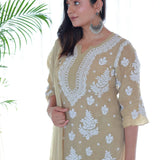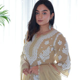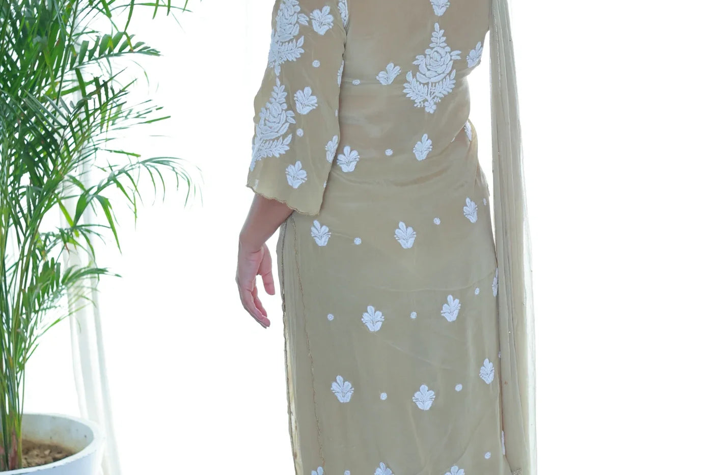 Aafreen Tan Brown Crepe Suit Set With Mukesh Dupatta
