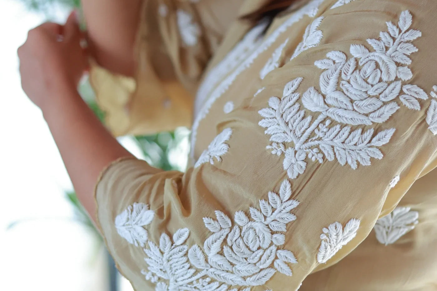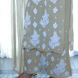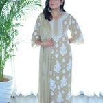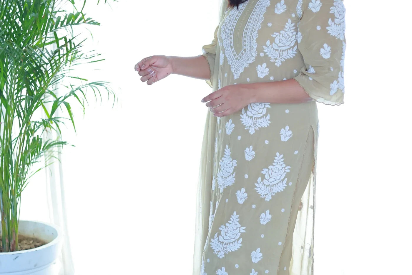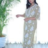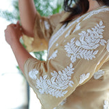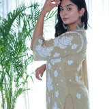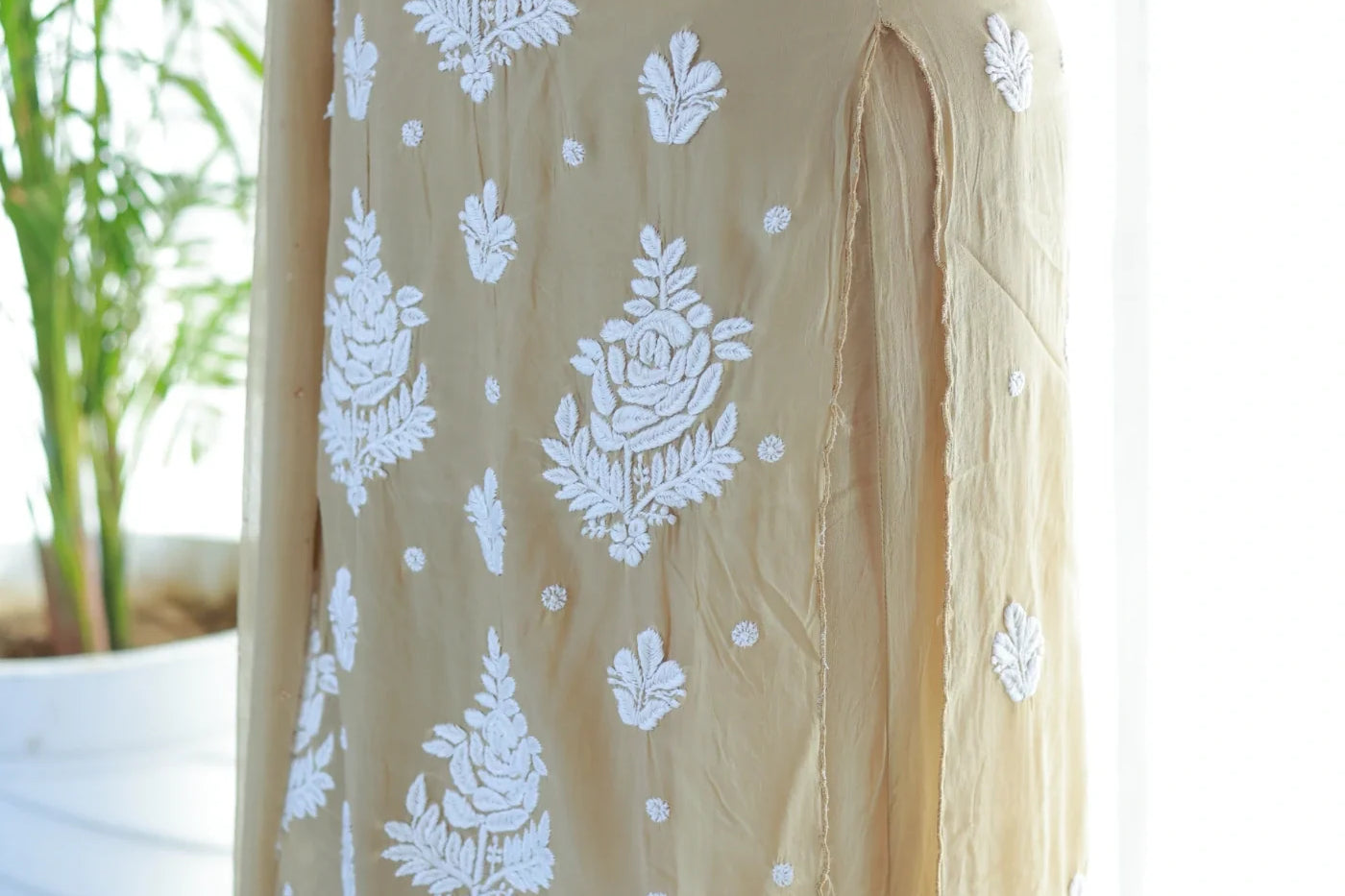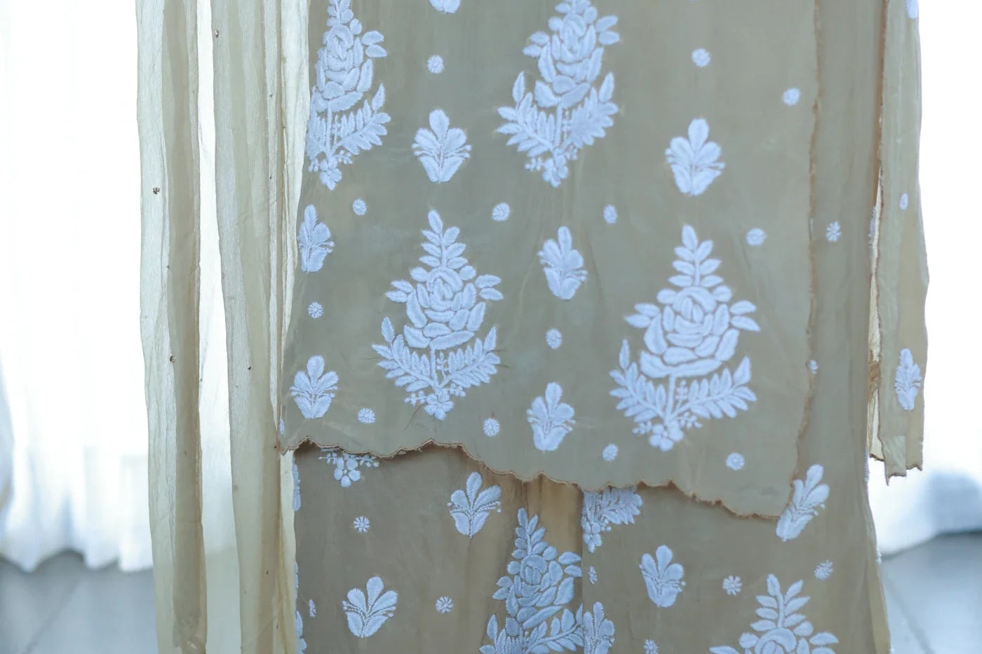 Aafreen Tan Brown Crepe Suit Set With Mukesh Dupatta