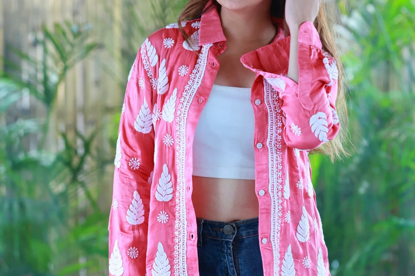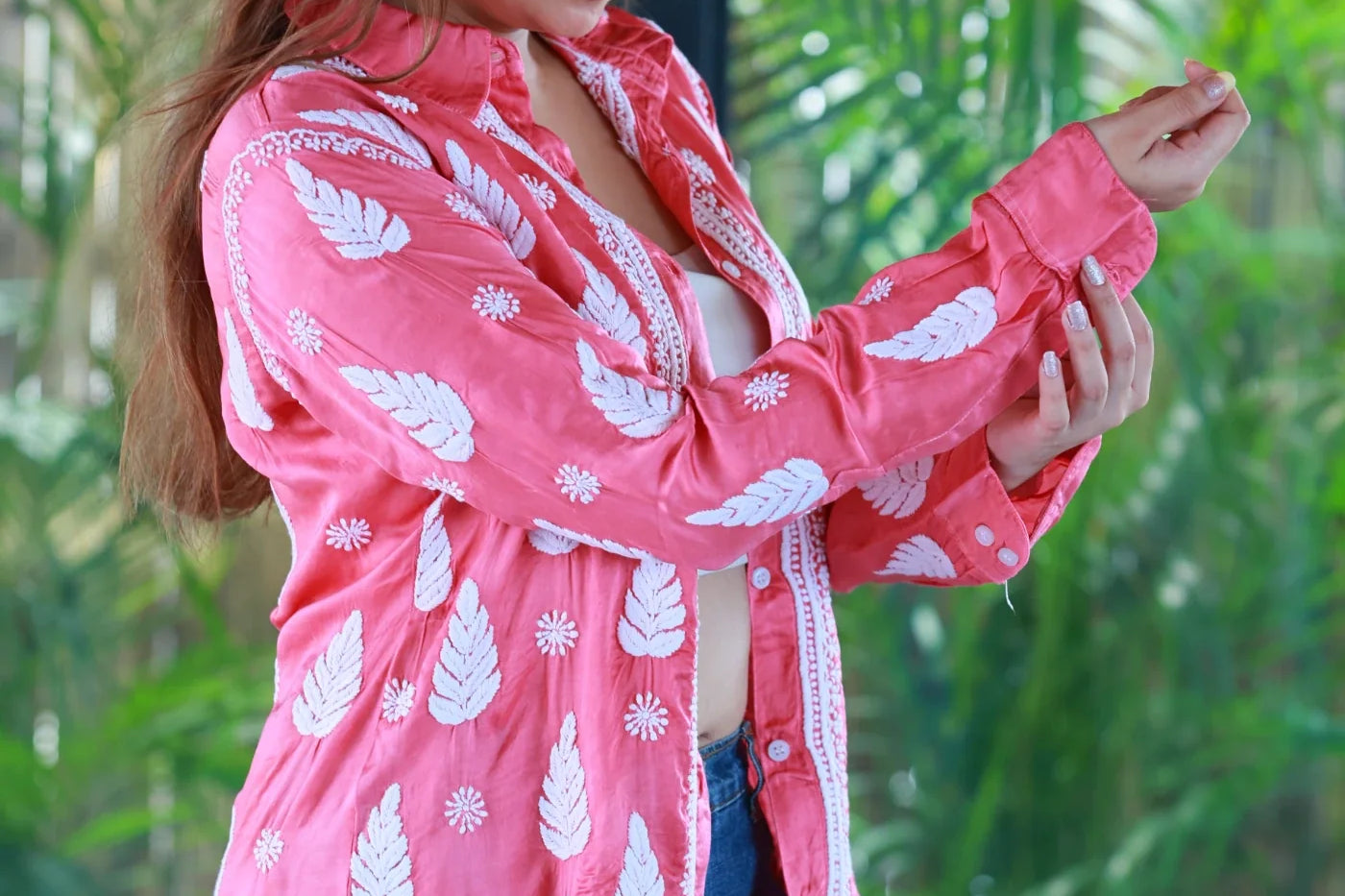 Zohra Gajari Pink Satin Shirt Shrug