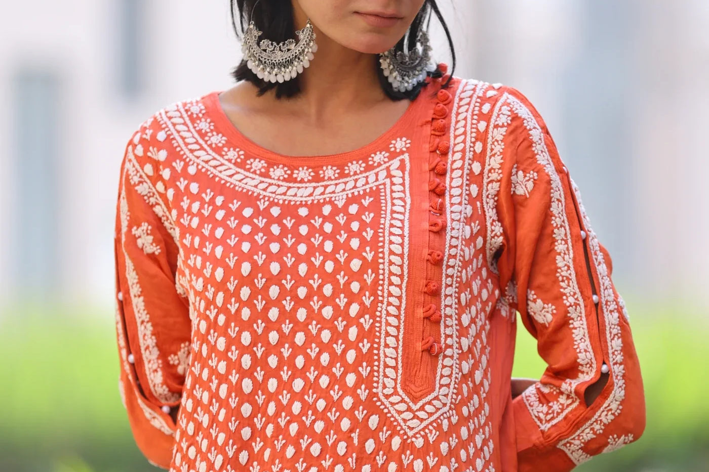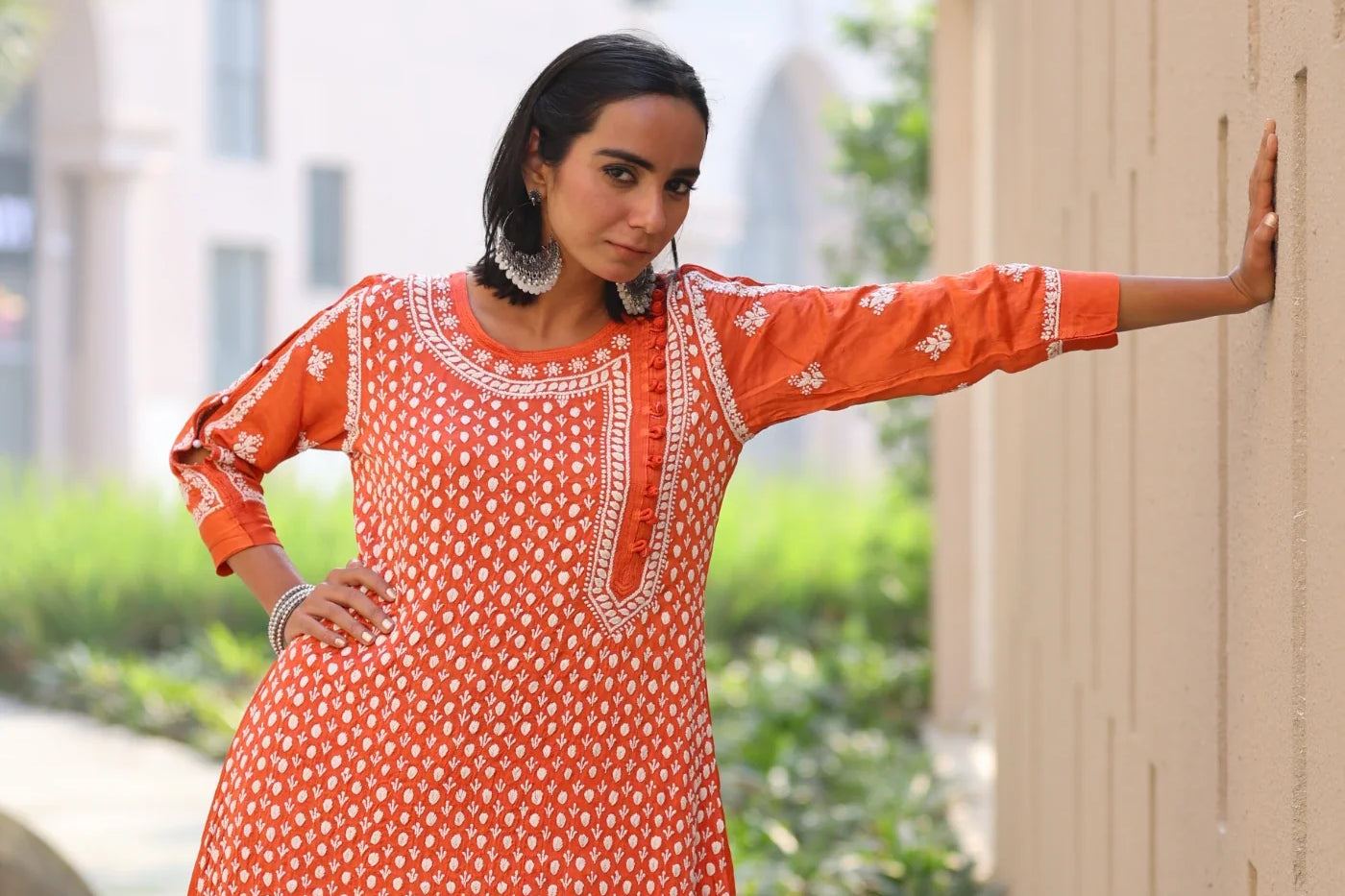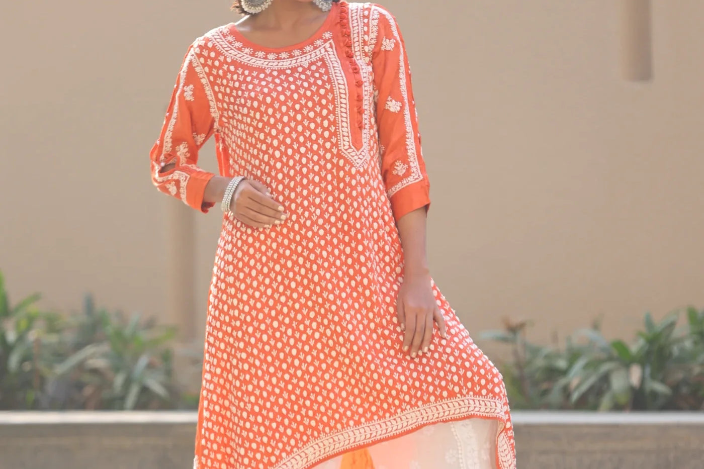 Kiara Orange High Low Satin Kurti