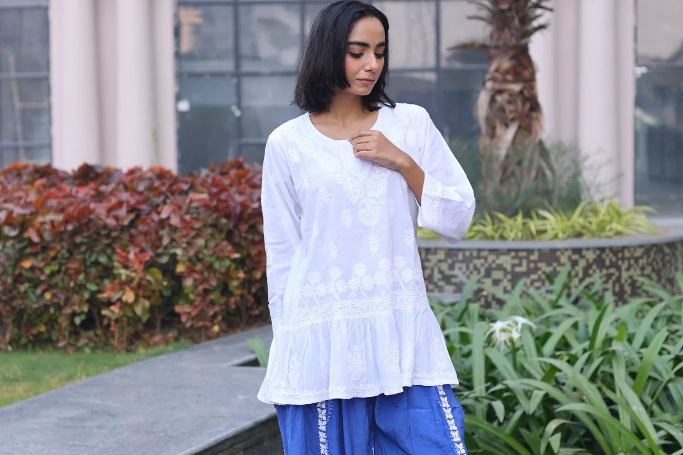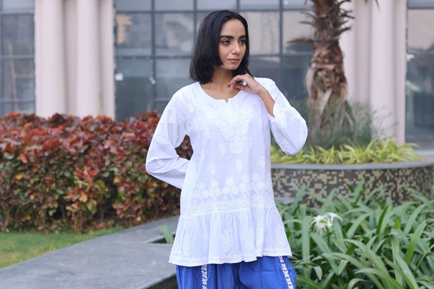 Maria White Mul Cotton Short Frock Style Top