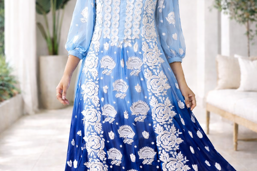Moonlight Ombre Crepe Dresss with Ballon Sleeves