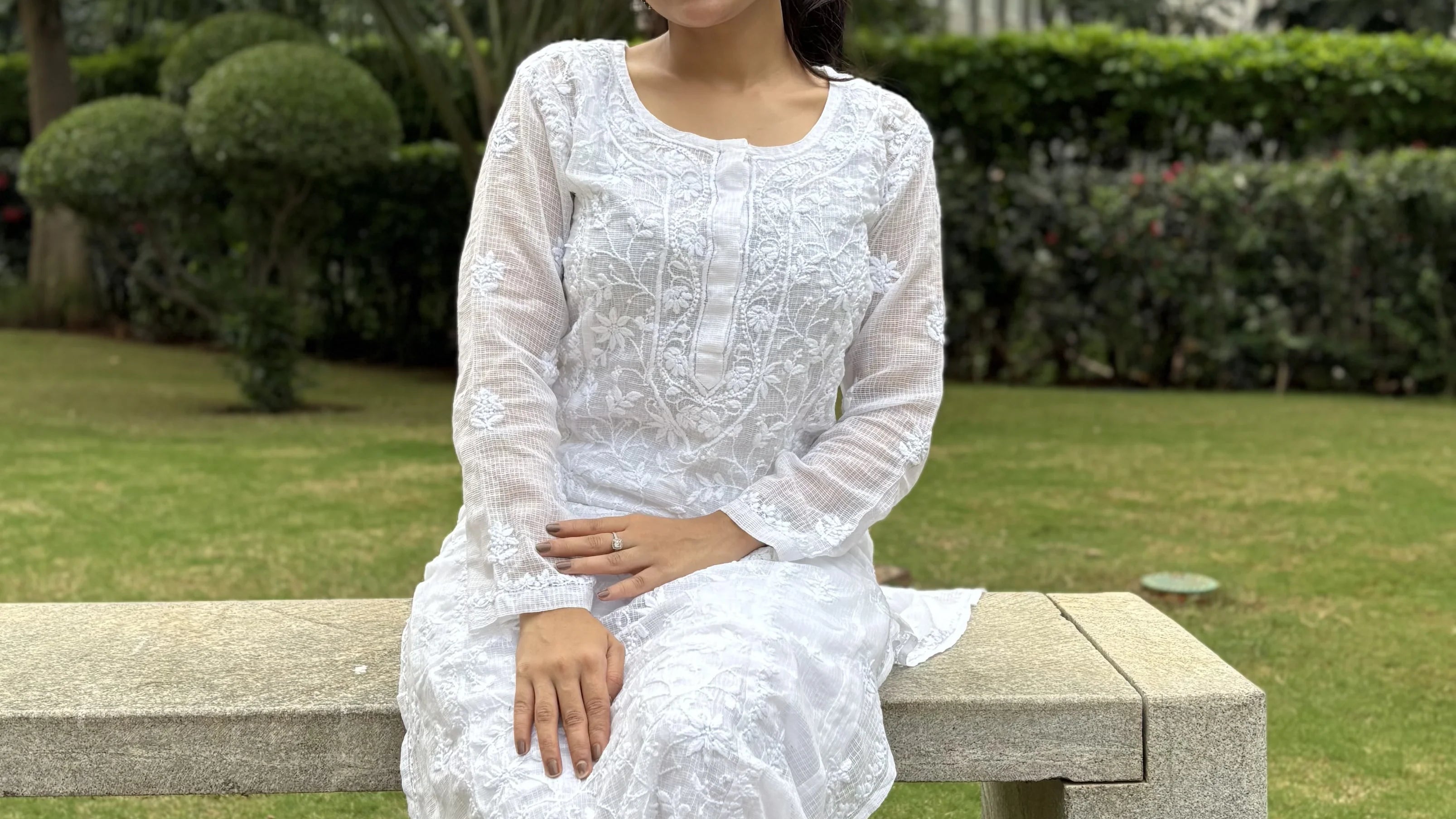 Rukhsar White Kota Doriya Co-ord Set with Lining