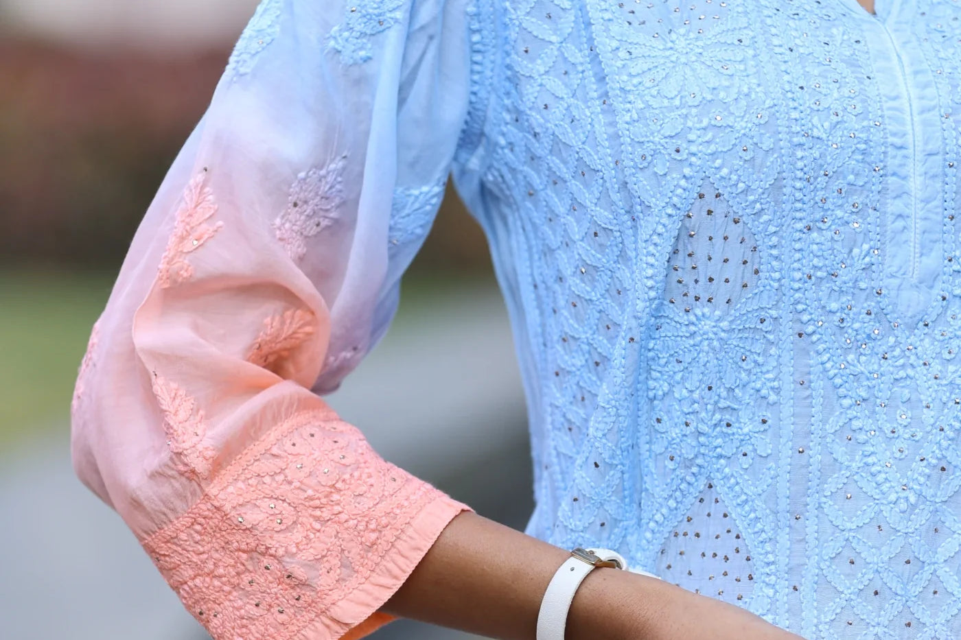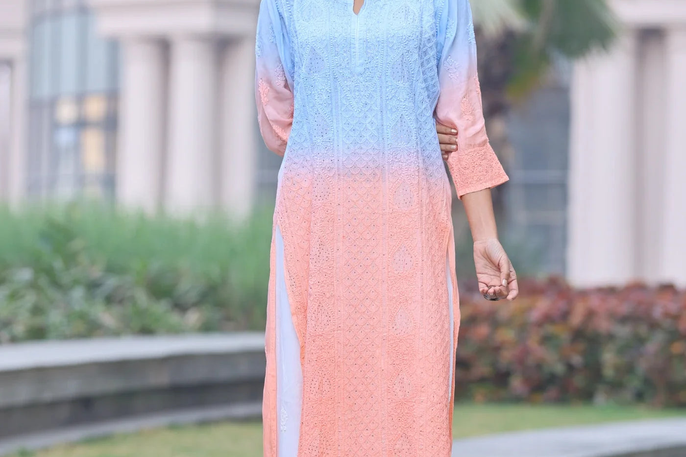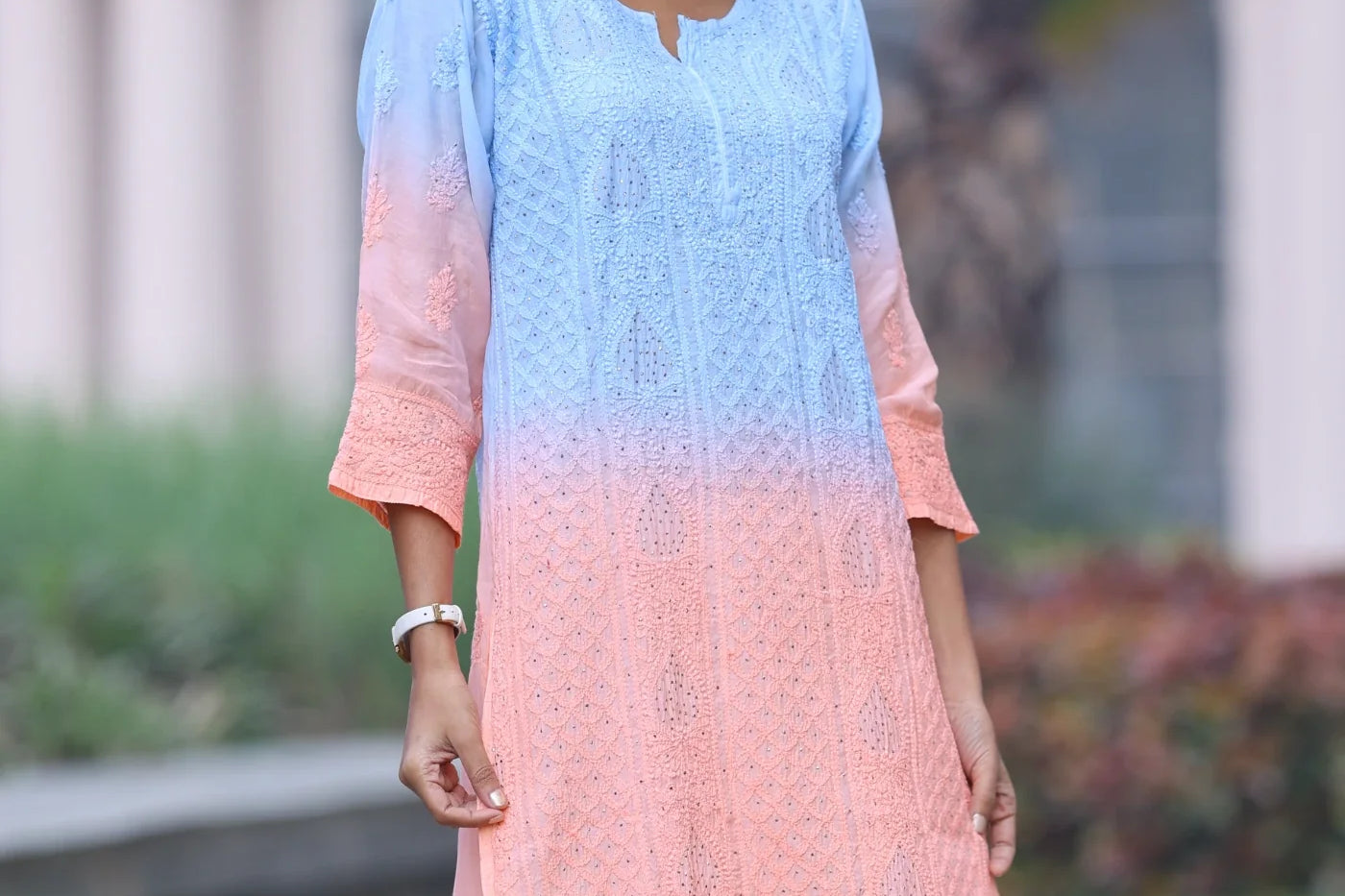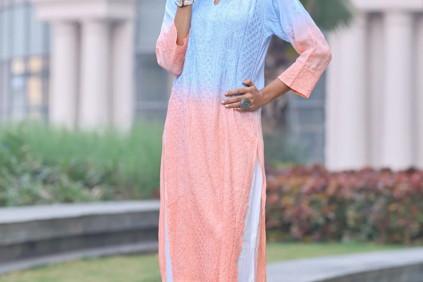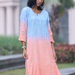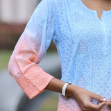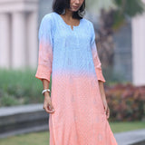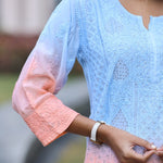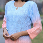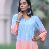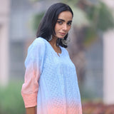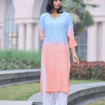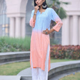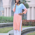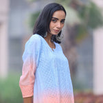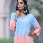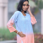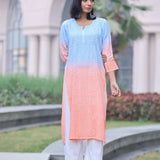 Sama Blue Peach Double Shaded Muslin Kurti With Mukesh