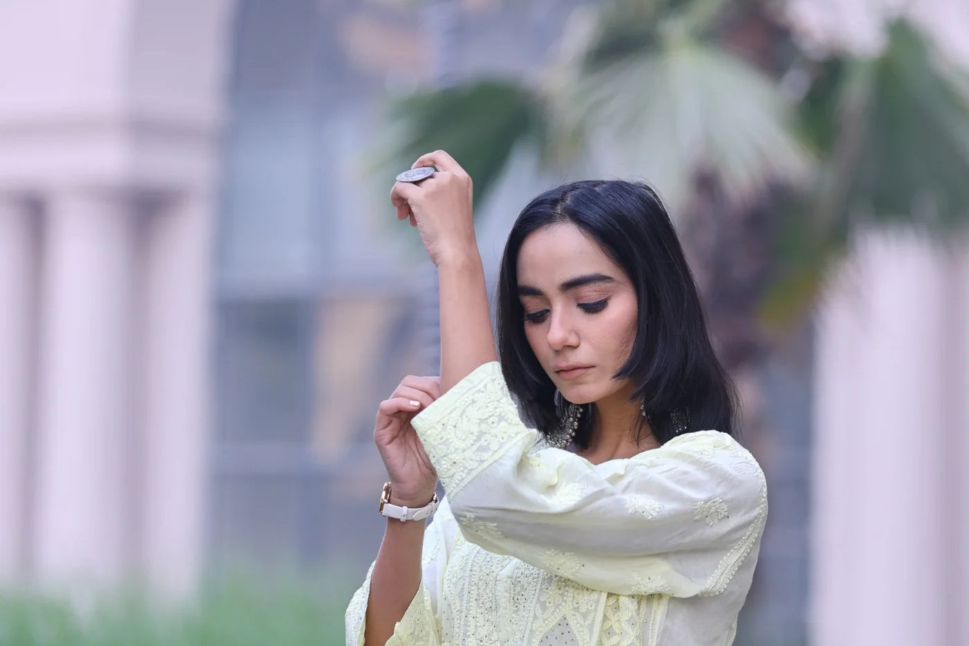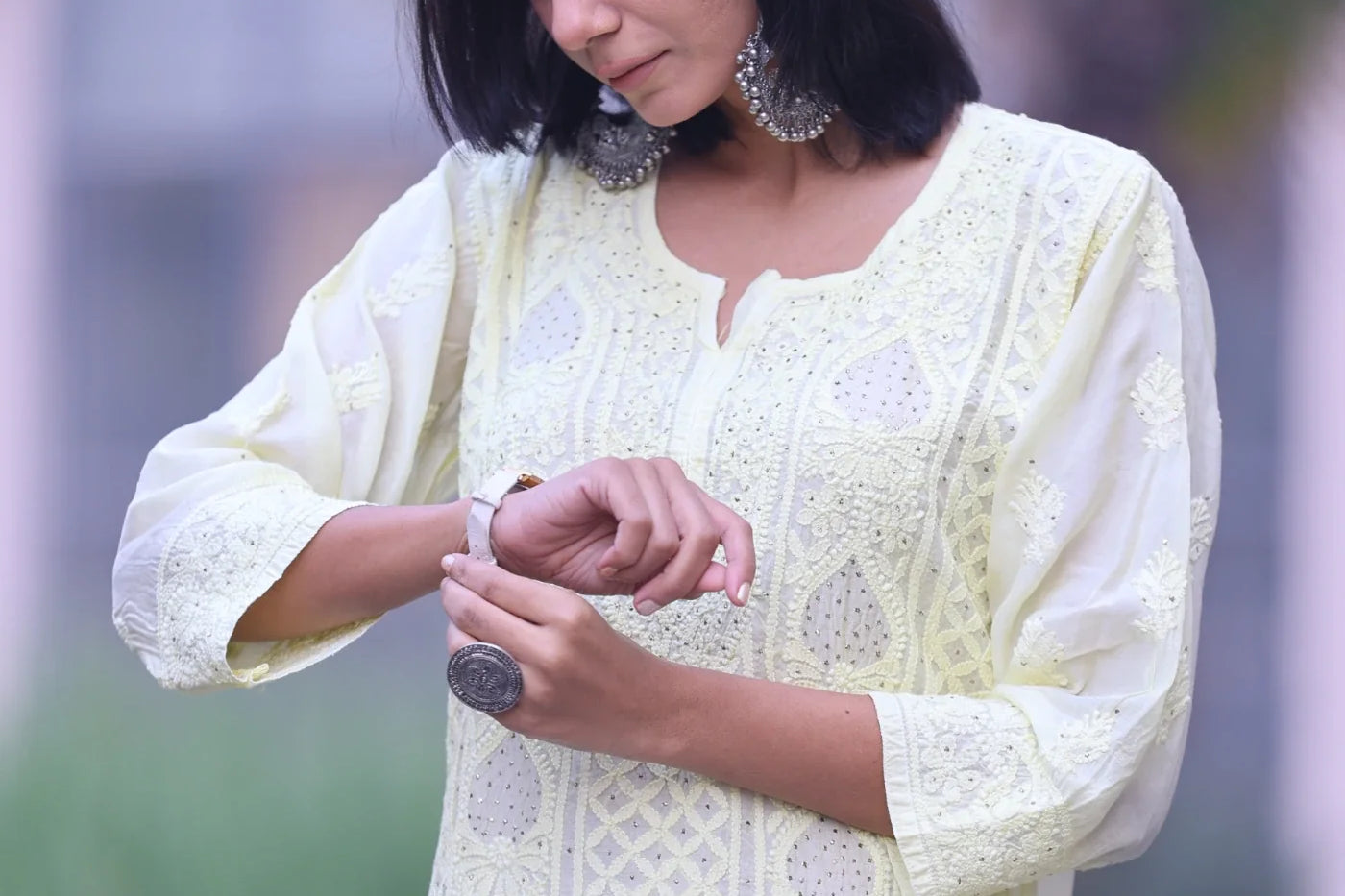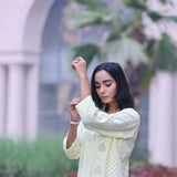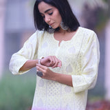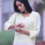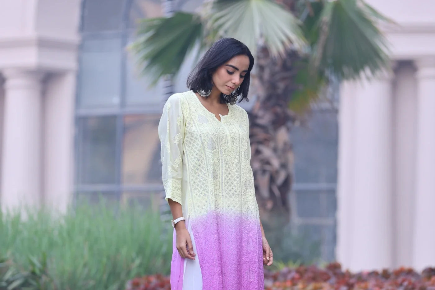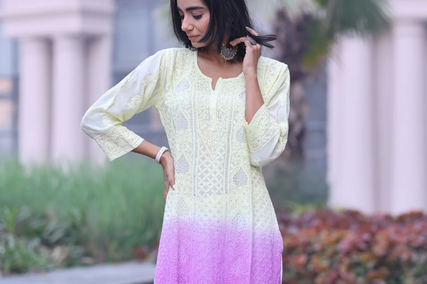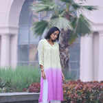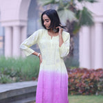 Sama Yellow Purple Double Shaded Muslin Kurti With Mukesh